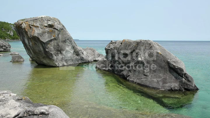 Big rocks in the clear, turquoise waters of Georgian bay. Bruce Peninsula National Park, Tobermory, Ontario, Canada. HD (1920 x 1080).