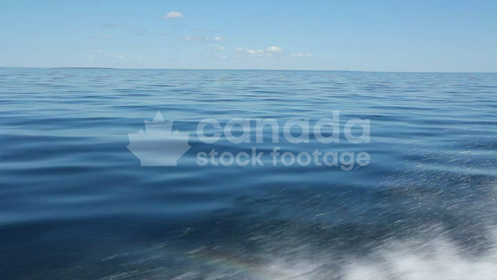 Riding in boat across blue water of Fathom Five Marine Park, Tobermory, Ontario, Canada. HD (1920 x 1080).