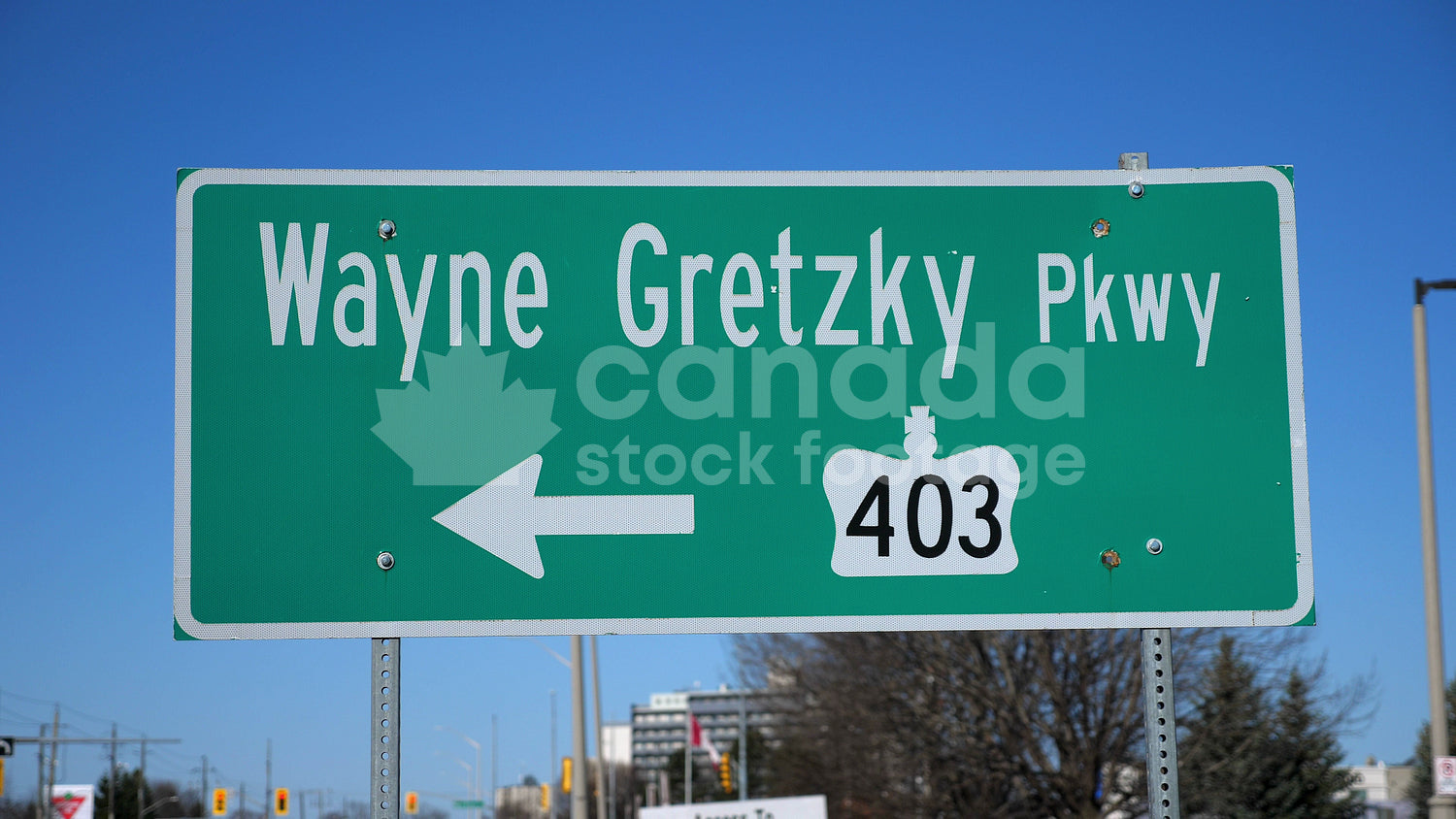 BRANTFORD, CANADA-April 7th, 2025: The Wayne Gretzky Parkway is a significant north-south roadway in Brantford, Ontario. Wayne Gretzky was born in Brantford and is the leading career point scorer and assist producer in NHL history and has more assists than any other player has total career points. 4K (3840 x 2160)