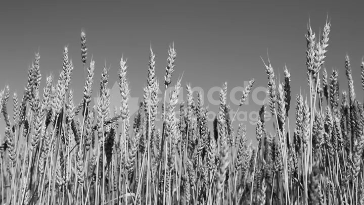 Wheat crop. Shallow DOF. Saskatchewan, Canada. Black and white. HD.